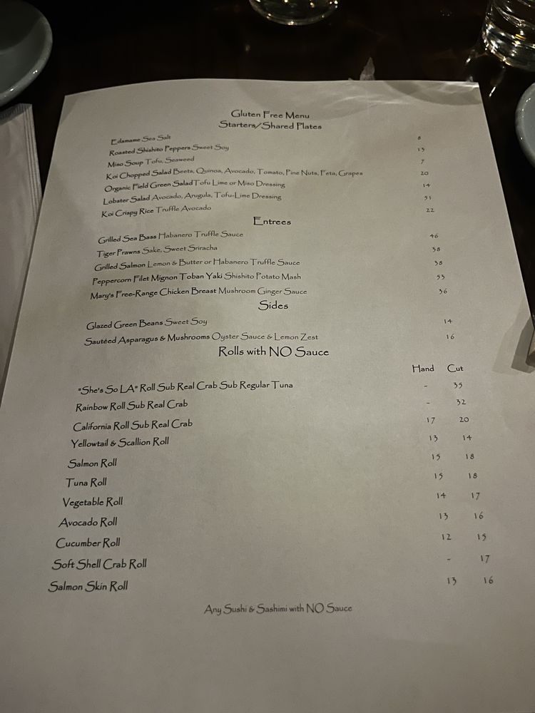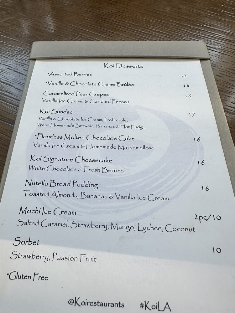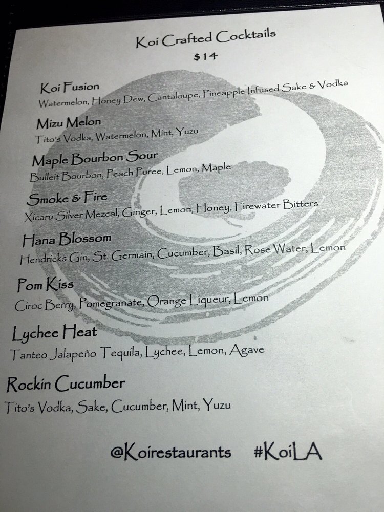 Introducing the menu at Koi, located in Los Angeles, offers a diverse range of starters, shared plates, and entrees. The restaurant prides itself on its fusion dishes like Koi Crispy Rice and Creamy Shrimp Tempura. Customer reviews highlight the excellent sashimi and sushi options, as well as the attentive service and beautiful ambiance. The menu features Miso Black Cod, Tiger Prawn, Seared Salmon, and other enticing entrees. Standout dishes include Salmon Carpaccio, Lobster Tacos, and Grilled Lamb Chops. The extensive vegan menu at Koi also receives praise for its flavorful and unique offerings like Vegan Dragon Roll and Avocado Crispy Rice. Overall, Koi is a must-try dining spot for both vegans and non-vegans looking for high-quality food and exceptional service in a trendy setting.